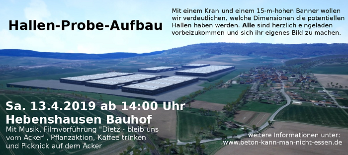 Aktuell läuft von Seiten der Gemeinde ein Verfahren zur Beteiligung der Öffentlichkeit zu den Planungen des Sondergebiet Logistik. Jede interessierte Person kann bis zum 20.4.18 den Vorentwurf des Bebauungsplans inklusive Umweltbericht in der Gemeindeverwaltung (Lange Straße 27, 37249 Hebenshausen, Mo-Fr 8:00-12:00h und Do 15:00-18:00h) oder auf der Homepage der Gemeinde einsehen. Informationen über Ziel und Zweck der Planung können verlangt und Stellungnahmen abgegeben werden.